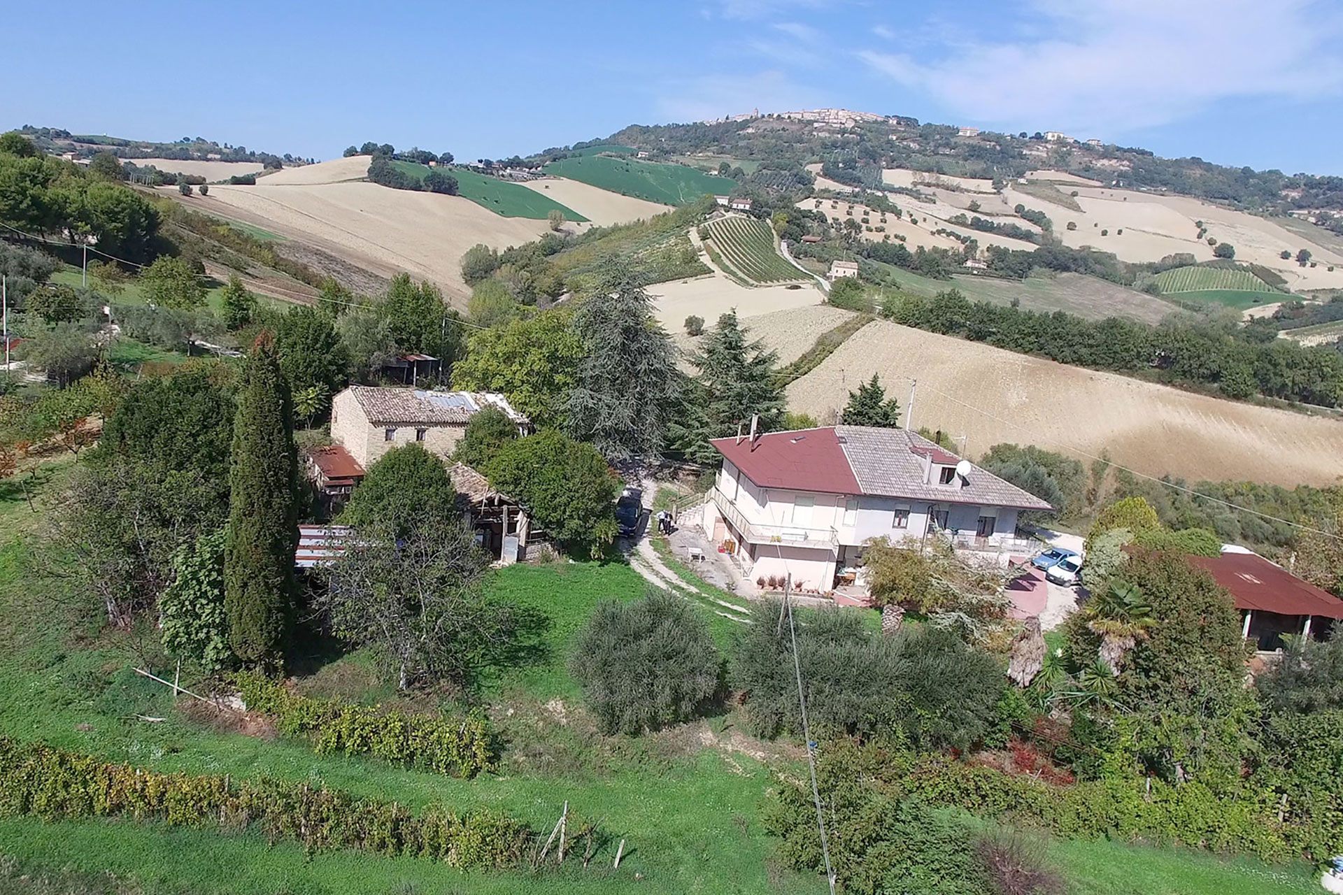 Nel cuore delle dolci colline marchigiane, proponiamo in vendita una splendida casa colonica con annessa porzione di fabbricato cielo-terra e 30.000 mq di terreno agricolo.